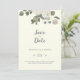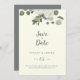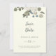 Dieser Winter floral auf Elfenbein Hochzeit speichern Sie die Dattelkarte ist perfekt für eine elegante Hochzeit. Das schlichte Design besticht durch weiße Blume mit Wintergrün und Eukalyptus-Blätter und ein modernes Landgefühl.