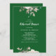 Diese Winterblume auf smaragdgrünen Proben lädt zu einem eleganten Weihnachtsfest ein. Das schlichte Design besticht durch weiße Blume mit Wintergrün und Eukalyptus-Blätter und ein modernes Landgefühl.
