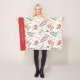 Bleibe dich in dieser Urlaubssaison mit unserer personalisierten Fleecedecke Winter Floral auf. Die Decke zeigt Ihren Namen in einem roten, rechteckigen Rahmen und ein Muster von Aquarellpoinsettia-Blume, Elfenbeinwölben, Heiligbeeren und üppigem Grün.