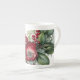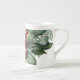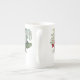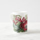 Genießen Sie Ihren Tee in dieser wunderschönen Knochen-China Tasse von Winterfloralen in Grün, Rot und Weiß in einer erweiterten Aussicht