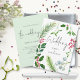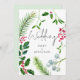 Winter Foliage Script WeihnachtsWedding. Im Gedächtnis einer festlichen Hochzeit steht eine Grenze von Heiligen, Farnen, Mistletoe und Beeren an der Vorderseite mit Hochzeit in einem Set informellen Skript mit Ihren Namen, und die Details sind auf der Rückseite. Einfach den bearbeitbaren Text personalisieren, und wenn Sie den grünen Hintergrund auf der Rückseite ändern möchten, können Sie dies über die weitere Option anpassen.