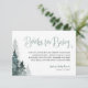 Individuell gedruckte Buchanfragekarten zur Abstimmung mit unserem Baby-Duscheinladungs-Design im Winterwald. Verwenden Sie die Designwerkzeuge, um den Wortlaut anzupassen und die Schriftart und Farben zu bearbeiten, um Ihre eigene Babydusche-Buchanforderung Einsteckkarte zu erstellen.