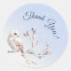 Elegant winter owl illustration featuring a snowy owl perched on a frosty branch, soft pastel watercolor design, serene winter scene, delicate snowflakes, nature wildlife art, beautiful on party supplies, seasonal gifts, and woodland-themed products.
