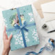 Meeresschaum oder türkisfarbene Farbe mit Schneeflocken-Mustern Geschenkverpackung. Verwenden Sie Ihre eigenen Lieblingsfotos, um dieses Weihnachtsgeschenk-Wrapper des Holiday Foto individuell zu gestalten. Am besten funktioniert ein quadratisches Foto