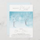 Probe Dinner Einladung mit Aquarelllandschaft in Blautönen. Im Zentrum stehen zwei Bäume mit schneebedecktem Frost, die Äste der Bäume bilden ein dünnes Netz gegen den Himmel und erstrecken sich im Winter zaubern zu einem Idyll für viele Jahre. Winter frisch zart Probe Dinner Einladung. Winter Freshness Collection