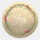 Winter Greenery Berries Wreath Christmas Joy Gold Runder Aufkleber