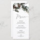 Feiern Sie stilvoll mit dieser rustikalen Winterkarte mit einer Aquarellkiefer und einem Eukalyptuszweig mit Blume aus Baumwolle und eleganter handschriftlicher Kalligraphie.