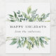 Elegante, botanische Weinetiketten mit dem Gruß "Happy Holidays" und Ihrem Namen gerahmt durch grünes Aquarell. Die Weinetiketten im Grünen sind perfekt für Feierlichkeiten!
