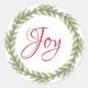 Eleganter und moderner festlicher Umschlag Aufkleber oder Geschenkaufkleber für Weihnachten mit dem Text 'Joy' in roter Chic-Schrift-Kalligraphie und einem stilvollen Winterkranz auf weißem Hintergrund. Exklusiv für Sie entworfen von Happy Dolphin Studio. Wenn Sie Hilfe oder passende Produkte benötigen, kontaktieren Sie uns bitte über unseren Chat!