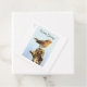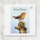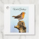 Winter Greetings text you can customize. Robin singing, on a small tree stump.
