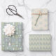 Winter Grüne Bäume Schneeflocken Pastel Modern Geschenkpapier Set