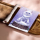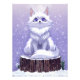 A digital illustration features a fluffy white fox with large blue eyes🦊, sitting on a tree stump covered in snow. Inspired by the elegant pose of a cat, this art brings the Arctic Fox to life amidst a serene winter dream. Set against a soft lavender background💜 with gentle snowfall, its striking blue eyes capturing the whimsical of the season. Created with a personal touch of colors to bring a touch of winter enchantment , magical energy and dreamlike atmosphere to any space.✨🎨