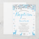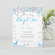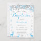Winter Hirsch Taufe Einladung. Weiße und blaue Schneeflocke. Boy-Taufe.Erstkommunion. Feiern Kindesentzug. Weißer Hintergrund