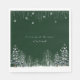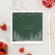 Winter Wedding Pine Trees Snowflakes Papierservietten haben einen schönen, dunkelgrünen Hintergrund mit schneebedeckten Pinienbäumen, weißen Winterbäumen, Schneeflocken und hübschem Hängefunkeleffekt. Personalisieren Sie mit Ihren Informationen, anpassen Sie für den Einsatz als Winter Wonderland Sweet 16 Einladung oder Weihnachtskarte.