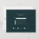 Schöne Winterhochzeit-Antwortkarte in einem dunklen Jägergrün mit hübschen Kiefernzapfen, Kiefernästen und goldenen Blattakzenten.