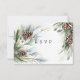Schöne Winter Hochzeit RSVP Karte mit Aquarellkiefer, Kiefernnadeläste und Waldzweige.