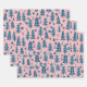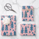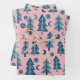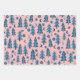 Winter Holiday Blue Pink Trees Pattern Gift Geschenkpapier Set