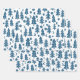 Winter Holiday Blue White Trees Pattern Gift Geschenkpapier Set