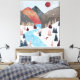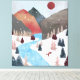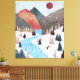 Eine wunderschöne Landschaft mit einzigartigen Texturen, die eine Fluss- und Berglandschaft zeigen, mit einem Fuchs in der Md-Jump-Jagd im Schnee in Rot, Grün, Blau und Beige.