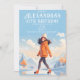 Winter Ice Skaten Party. Braun Haar Mädchen auf der Eisbahn unter den Bergen. Abbildung Skaten Mädchen im Freien. Einladung zum Geburtstag.