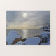 Das Foto wurde am Morgen nach einem großen Schneesturm im Jahr 2012 aufgenommen. Der Blick reicht vom hinteren Strand in der Indian Cove, Guilford, Connecticut.