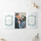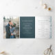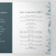 Blaue Fichtenwinterkiefer botanische Aquarellkunst und Goldgrenzenhochzeit mit 2 vollseitigen Fotos. Personalisieren Sie dieses Hochzeitsdreifachprogramm mit Ihren eigenen Details zur Hochzeitsfeier. Andere Farben und passende Hochzeitsartikel sind erhältlich. © Original Aquarellkunst und Grafikdesign von Sarah Trett für www.mylittleedenweddings.com auf Zazzle.