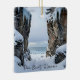 A Christmas ornament with an illustration of Door County, Wisconsin n the winter The pretty dune ledges covered in icicles and frozen blue water of Lake Michigan.