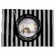 Aquarellmalerei einer Winterszene in Neuengland, ein ruhiger Tag, an dem der Schnee gerade in den Boden gefallen ist. Sehr malerisch und friedlich. Das Design hat einen schwarzen Rahmen mit personalisierten Texten auf der oberen und unteren Seite. Das Design hat ein vertikales grau-schwarzes Streifen-Muster. Anpassbar in Zazzle mit eigenem Text für ein personalisiertes Design. Karo aus meinem Shop für passende Artikel!