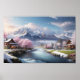 Winter Japanischer Sakura Baum mit Bergblick Poster