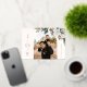 Freuen Sie sich auf die Welt, den Winter mit Blumen und Grün, die Fotokarte mit Rahmen für Feiertage. Funktionen, solide schwarze Farbabdeckung mit Vorlagenraum für Ihre persönliche Urlaubsnachricht.