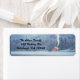 A serene winter lakeside cabin scene, beautifully detailed with snow-covered trees and a cozy cabin nestled beside a tranquil frozen lake, make for a stunning holiday return address label.