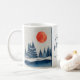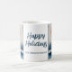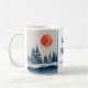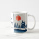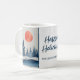 Winter Landscape Forest Orange Moon Navy Blue Drawing Holiday Mug. Calm winter snow landscape with forest. Happy holidays in a trendy script. Add your family name.