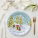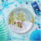 "Winter Let it Schnee Weihnachten Bäume Cuite Pinguin und Vogel, Willkommen Name Paper Party Teller." Benutzen Sie diese Teller für ein Party und den ganzen Winter lang! Ein blauer Himmel mit Schneeflocken, weihnachtlichen Weihnachtsbäumen, einem zauberhaften Pinguin und Vogel mit Weihnachtsgeschenken in leuchtenden Farben. Kunst in Aquarell von international lizenzierter Künstlerin und Designerin, Audrey Jeanne Roberts, Copyright.