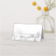Diese Platzkarte ist ideal für eine Hochzeit in Urlaubsort. Das Design besticht durch einen handbemalten Wald auf Hügeln und Bergen in einer idyllischen Winterlandschaft.