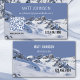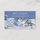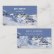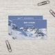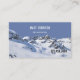 Visitenkarte mit schneebedeckten Berglandschaften. Das Rechteck auf der Rückseite ist eine benutzerdefinierte Form und kann an Ihre Bedürfnisse angepasst (oder gelöscht) werden. Der QR-Code ist ebenfalls optional und anpassbar. Wunderschön für ein Unternehmen, das Ausflüge zu den Skigebieten organisiert, sowie für Skilehrer oder Verleihfirmen in den Bergregionen.