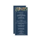 Lass deinen Gästen, dass sie wissen, was auf der Speisekarte für ihren Hochzeitsempfang steht, und verwende dieses in marineblau gehaltene Hochzeitsmenü.