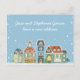 Als Winterlandschaft skurriler Zuhause fällt Schnee. Der Hintergrund ist hübsch blau. Personalisieren Sie diese Postkarte mit den Details Ihres Umzugs, Ihrer neuen Adresse, Position oder Zuhause. Sie sind großartig für Winterbewegungen im Dezember und Januar.