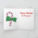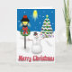 Weihnachts-Weihnachtskarte im Winter mit Schneemann, Weihnachtsbaum und Candy Cane.