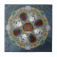 Kunst Nouveau Bögen umgeben die inspirierten Schichten des befleckten Glases dieses Mandala und kennzeichnen einen cozy Kamin, Poinsettias, Snowmen, Auroraen und Schneeflocken in den coolen Farben, um die Gefühle der Chips, Kühle völlig darzustellen, die mit Winter kommen. Diese Fliese kann gerahmt sein, ein trivet zu schaffen oder gesetzt innerhalb eines hölzernen Geschenkboxendeckels. Fliesen ohne einen Rahmen passen auch innerhalb der großen Geschenkboxen, um ein zusammenpassendes Set zu schaffen.