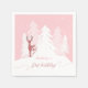 Das erste Winterwunderland zum Geburtstag, Onederland Pink Custom Napkin. Mit kleinen Schneeflocken, einem niedlichen Reh und Kiefern. Set eines süßen und magischen Tons für das Party mit diesem koordinierbaren, anpassbaren Serviettendesign. Ideal für den ersten Geburtstag Ihrer kleinen Schneeflocke. Party zum Thema Winter.