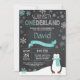 Winter Einladung Onederland 1. Geburtstag. Pinguin. Aqua Aquamarin Türkis und Weiße Schneeflocke. Der erste Geburtstag. Junge oder Mädchen 1. Tag Einladung. Hintergrund der Tafel. Schwarz und Weiß. Für weitere Anpassungen klicken Sie bitte auf die Schaltfläche "Anpassen" und verwenden Sie unser Designwerkzeug, um diese Vorlage zu ändern.