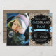 Winter Onederland Boy 1. Geburtstag Einladung mit individuellem Foto. Blaue und weiße Schneeflocke. Der erste Geburtstag. Junge 1. Tag Einladung. Rustikaler Holzkalkstein Hintergrund. Schwarz und Weiß. Blaue Schleife. Für weitere Anpassungen klicken Sie bitte auf die Schaltfläche "Anpassen" und verwenden Sie unser Designwerkzeug, um diese Vorlage zu ändern.