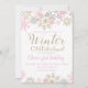 Winter ONEderland Einladung zum ersten Geburtstag mit Rosa, Gold und Silberschneeflocken
