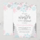 Winter Onederland Pink, Blue, Silver Glitzer Schneeflocken und Bäume erste Geburtstagsfeier Einladung.