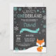 Winter Onederland Fox 1. Geburtstag Einladung. Fox. Aqua Aquamarin Türkis und Weiße Schneeflocke. Der erste Geburtstag. Junge oder Mädchen 1. Tag Einladung. Hintergrund der Tafel. Schwarz und Weiß. Für weitere Anpassungen klicken Sie bitte auf die Schaltfläche "Anpassen" und verwenden Sie unser Designwerkzeug, um diese Vorlage zu ändern.