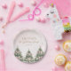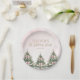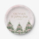 Winter Onederland Pink Bow Pine Trees 1st Birthday Pappteller