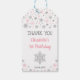 Niedlicher Geburtstagsgeschenk-Tag mit Rosa- und Silberschneeflocken, Imitate Glitzer Stars und Konfetti-Sprinklen