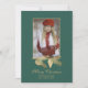 Feierliche Feiertage Foto Grußkarte in einem dunklen Smaragdgrün, mit Grafiken von goldfarbenen Bild Rahmen und schwachen goldenen Schnee wie Punkte. Die Grafik eines goldenen Kiefernzweigs mit Kiefernzapfen schmückt den Boden des Fotos. Personalisieren Sie mit Ihrem Foto und Text für einen schönen Weg, um Ihre Grüße in dieser Feriensaison zu senden.