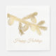 Weihnachts-Party-Papierservietten in weiß mit goldfarbenem Tontext, die Happy Holidays lesen, und kann personalisiert sein, zu lesen, was Sie gewollt. Die beiden oberen Drittel der Serviette sind mit goldener Grafik von Kiefernästen mit Kiefernkonen geschmückt. Für Ihre Feiertage stehen passende Produkte zur Verfügung.