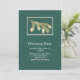 Weihnachts-Party Einladung in einem Kelly-Grün, mit Grafiken eines goldenen Kiefernzweigs mit Kiefernzapfen. Personalisieren Sie die weißen Textfelder, um Ihre Urlaubsbedürfnisse Anzug.